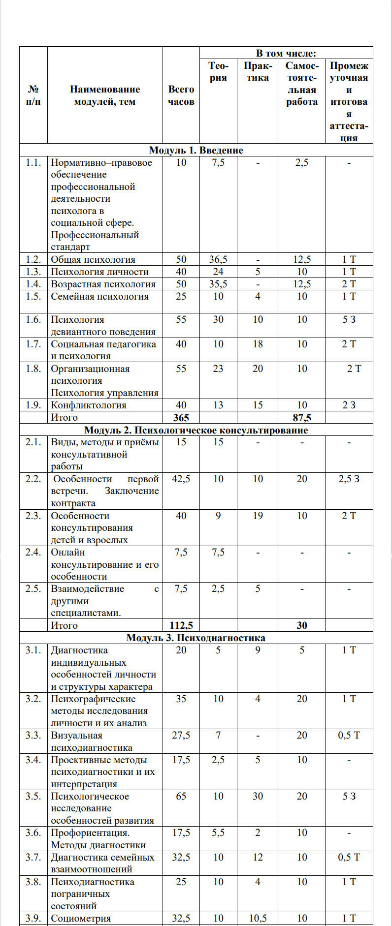 1 модуль. Введение 1.1. СПТ 1.2. История психологии 1.3. Основы общей психологии 1.4. Психология личности 1.5. Психология развития и возрастная психология 1.6. Клиническая психология 1.7. Семейная психология 1.8. Сексология и сексопатология 1.9. Социальная психология 1.10. Организационная психология 1.11. Психология управления. 1.12. Конфликтология 1.13. Основы законодательства